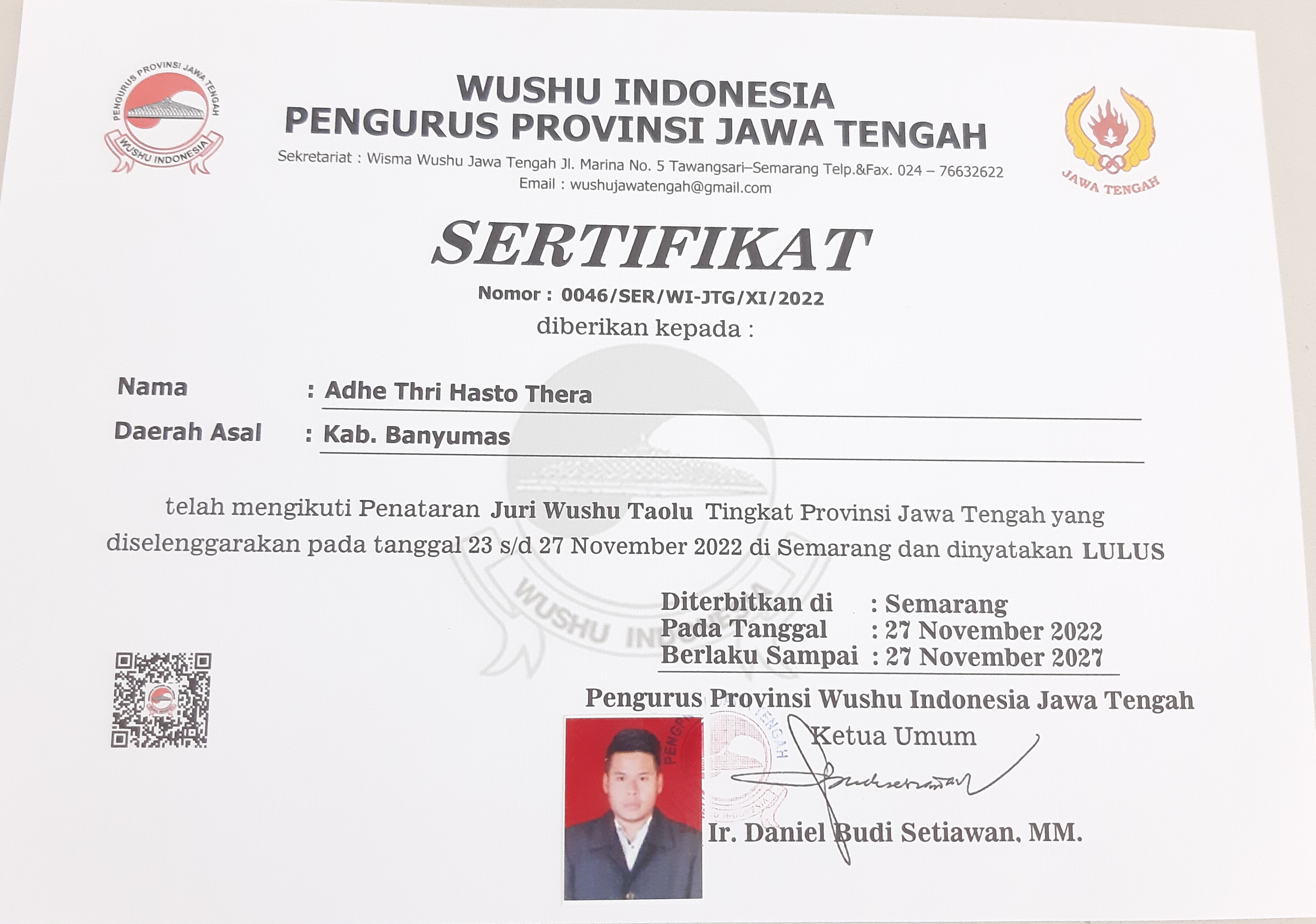 Sanda | Sertifikat Penataran Wasit Juri Wushu Jawa Tengah 2022 | C Provinsi |