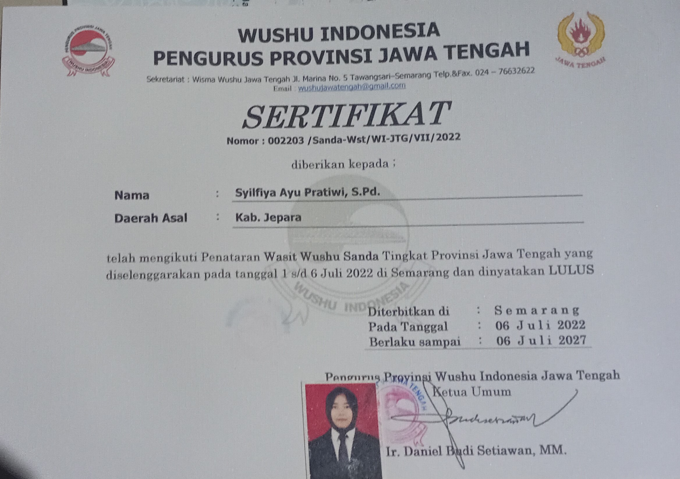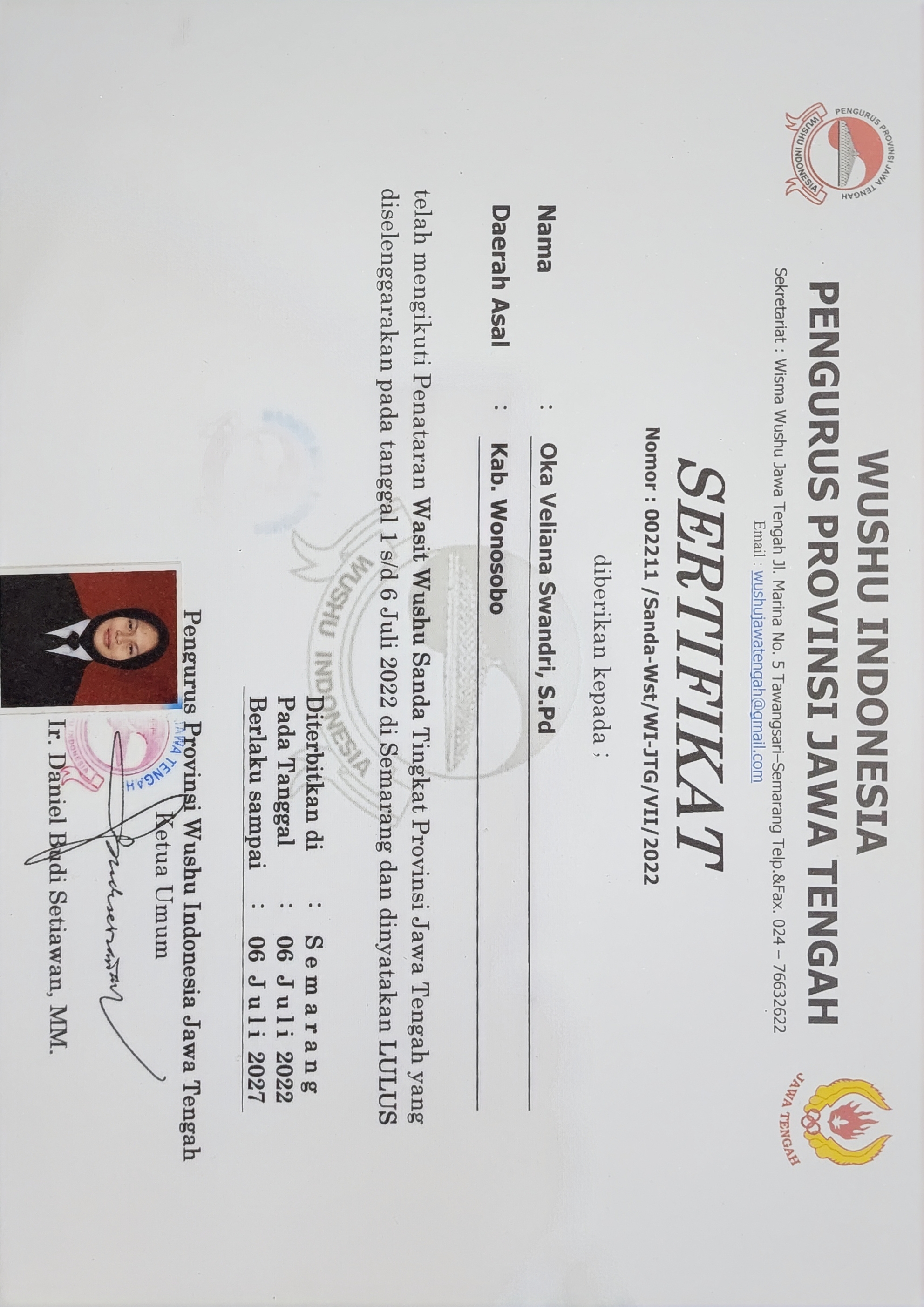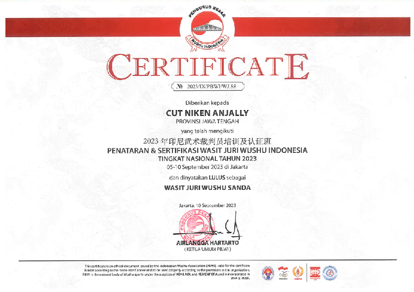 Sanda | Sertifikat Penataran Juri Wushu Sanda Jawa Tengah 2022 | C Provinsi |