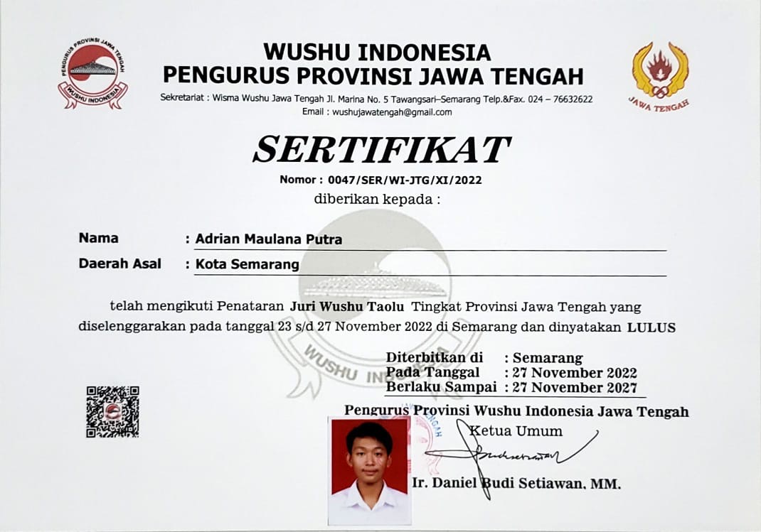 Taolu | Sertifikat Penataran Juri Wushu Taolu Jawa Tengah 2022 | C Provinsi |