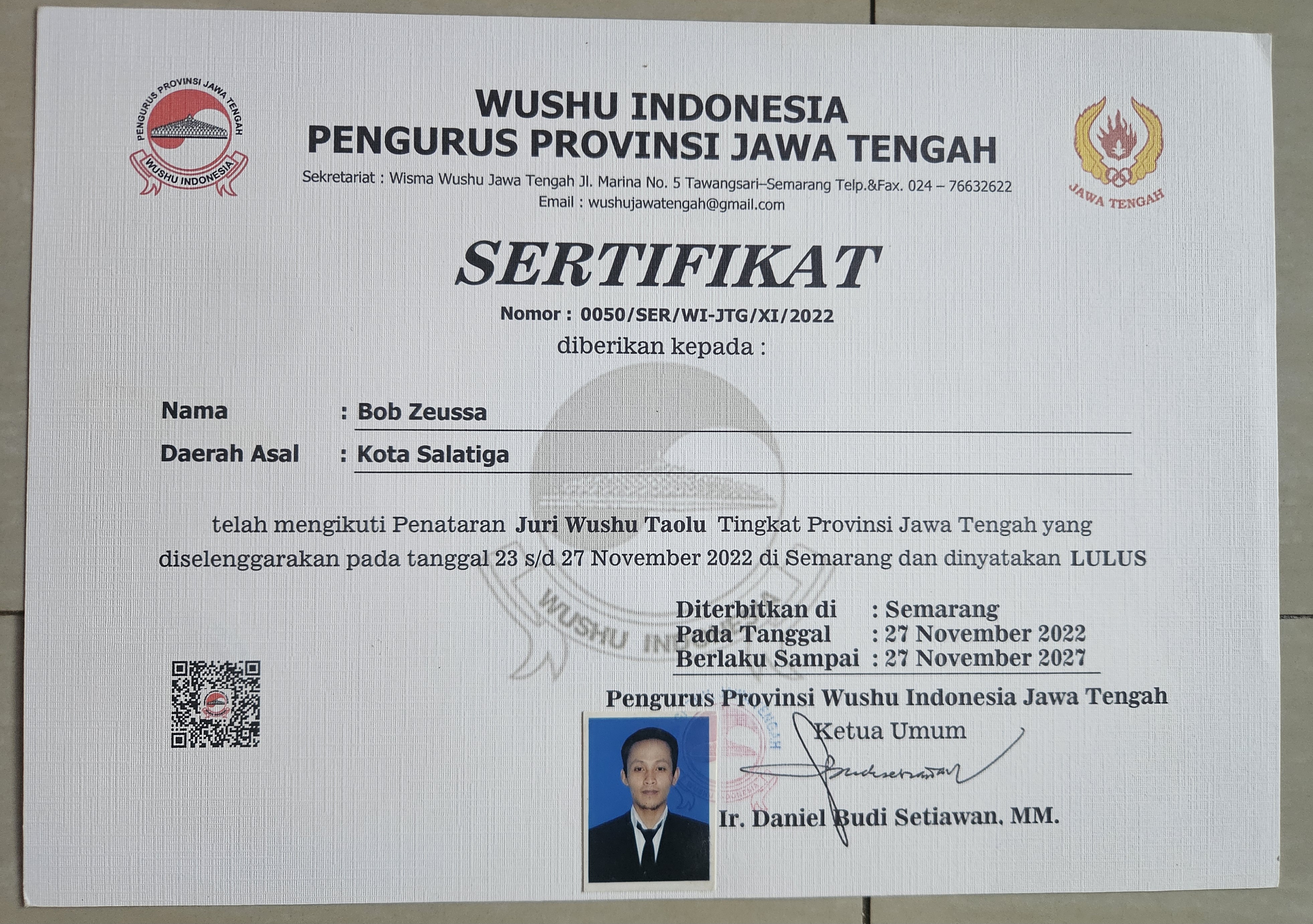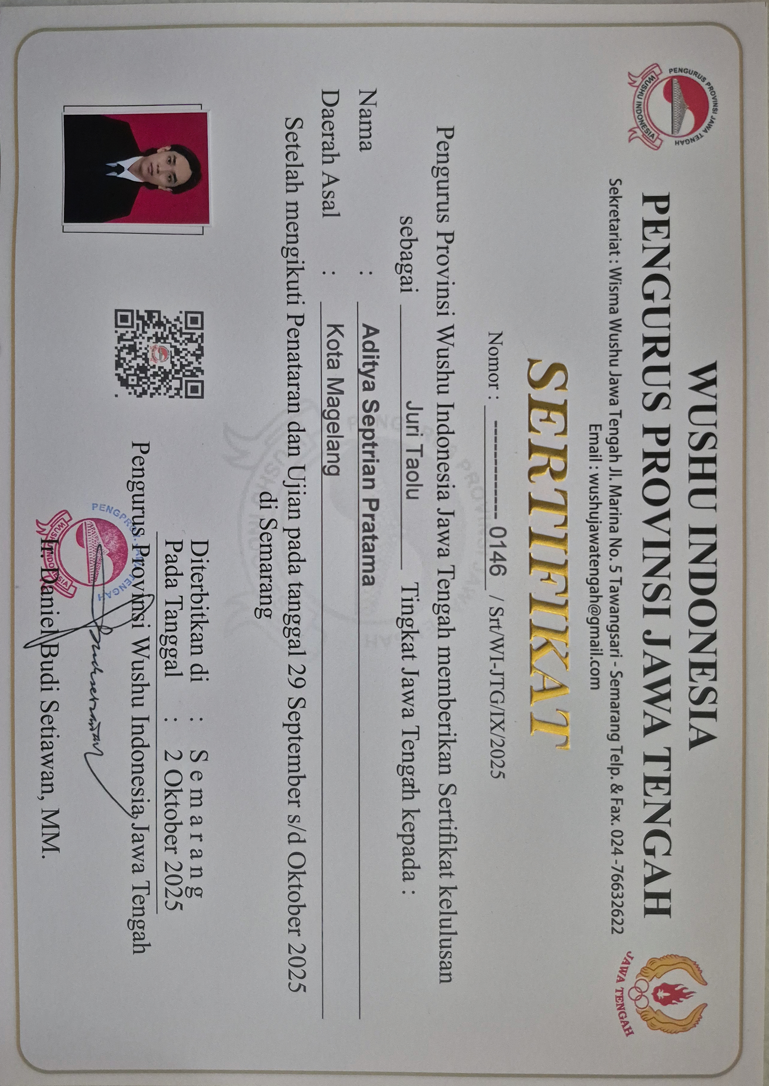 Taolu | Sertifikat Penataran Wasit Juri Wushu Jawa Tengah 2025 | C Provinsi |