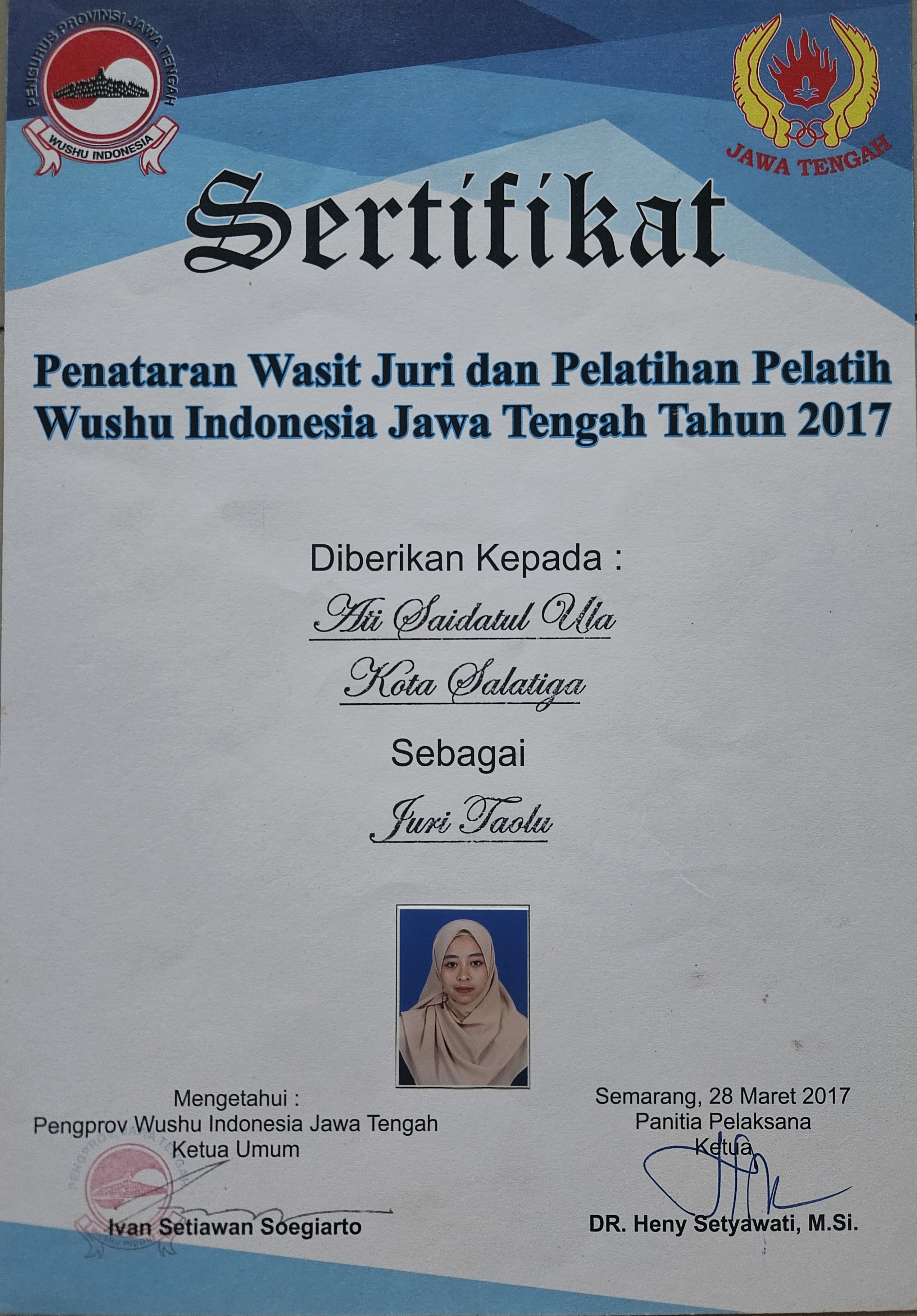 Taolu | Sertifikat Penataran Wasit Juri dan Pelatih Wushu Jawa Tengah 2017 | C Provinsi |